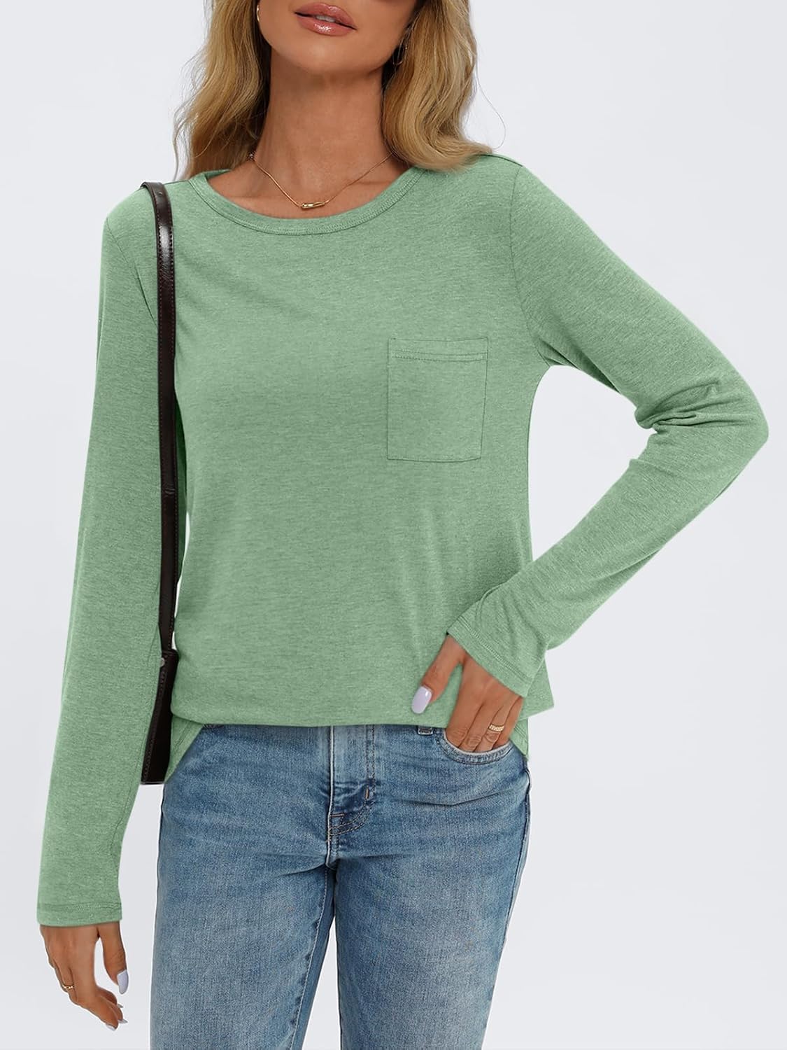 - Design: Long sleeve, loose fit t shirts, crew neck, womens tops with pocket, casual shirts, basic tops, trendy fall outfits for women